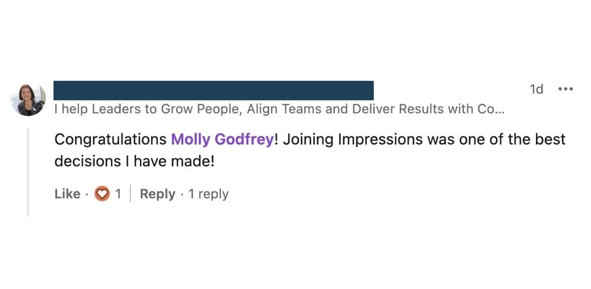 Pretty soon, dream clients started finding me and I started getting recognized for the stories I shared on LinkedIn. After growing an engaged community built around my voice and perspectives, I launched Impressions so I could help other women do the same.